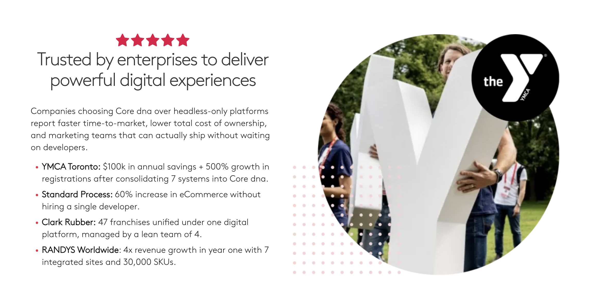 Whether you are managing dozens of franchise sites like our client Clark Rubber or consolidating fragmented departmental properties like YMCA Greater Toronto, you need a platform that can support all this features as part of its core foundation rather than late-stage workarounds.